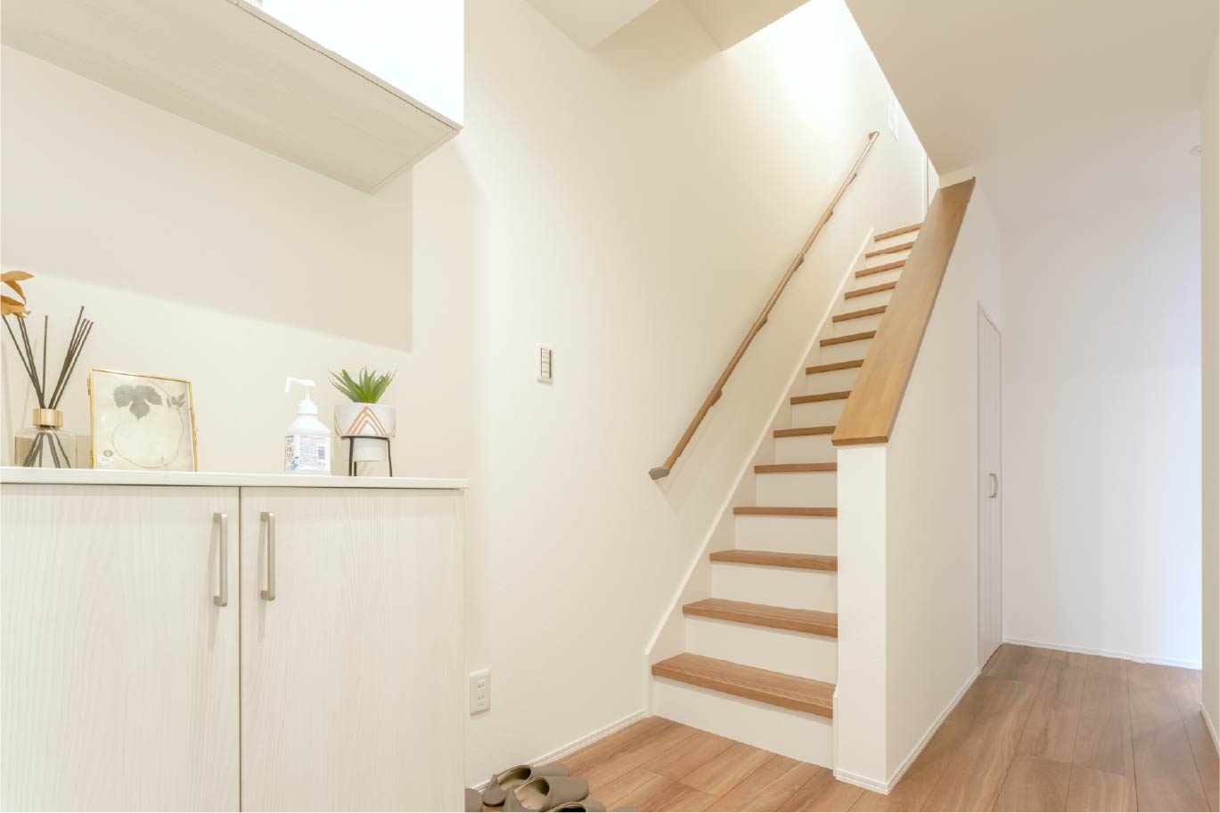 アイランドキッチンを配した広く明るいLDKと、2階主寝室にはウォークインクローゼットをプラニング。リモートワーク等で在宅時間が長いご家族にも喜ばれるプランです。